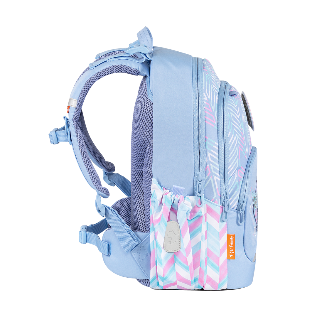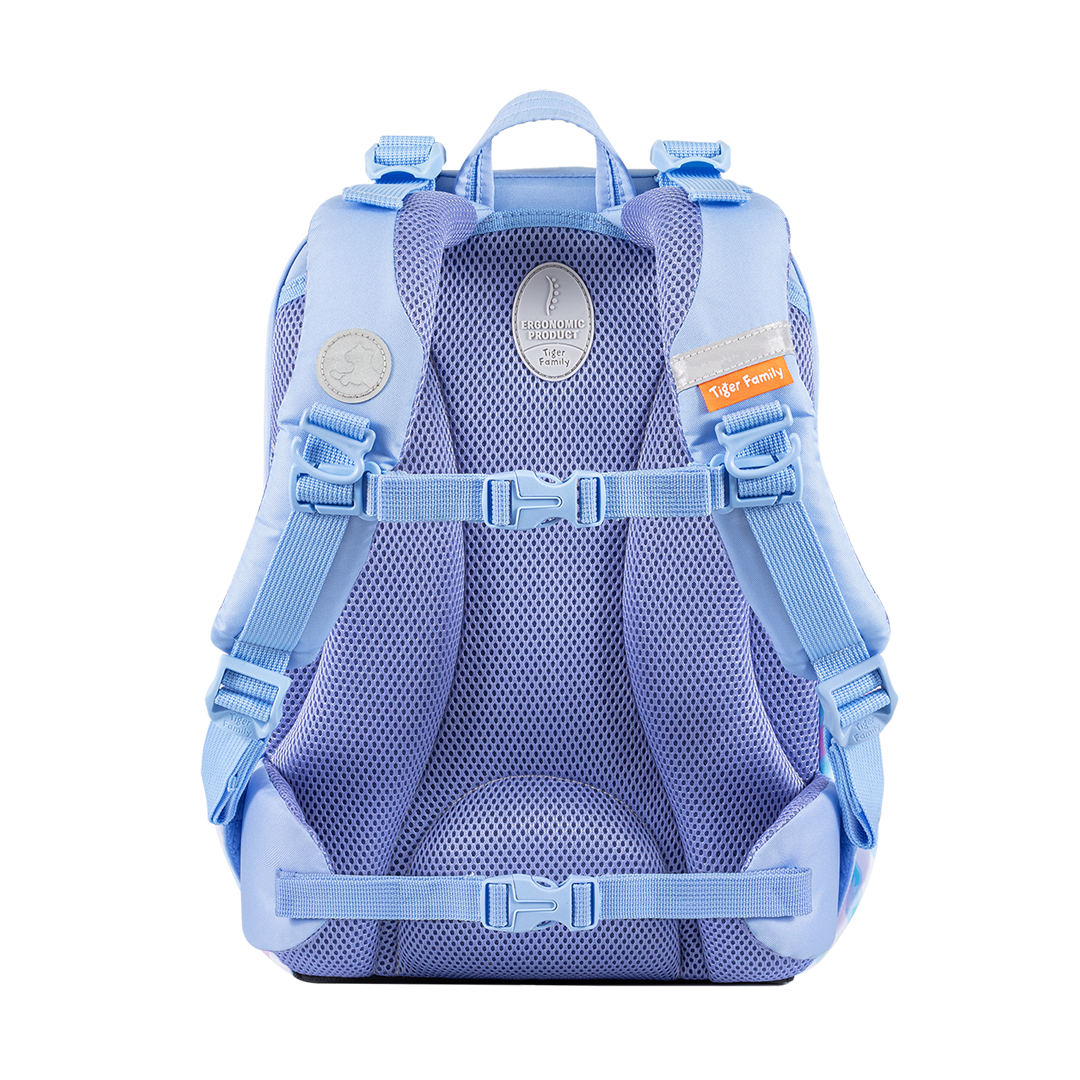 - 360人體工學護脊系統有效減輕肩部壓力達 66%,由 ICAS 上海英格爾集團檢測研發中心測評證明,3D網狀透氣加厚背墊上的獨特中空結構和肩部弧形曲線設計,配合胸扣和腰帶,有效緩衝書包重量負擔,支撐孩子脊柱,卸力舒壓,輔助維持良好體態