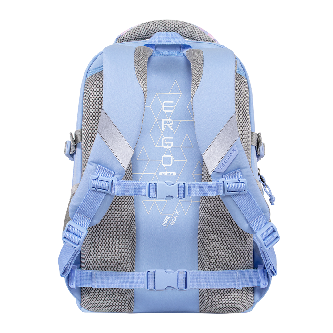 由ICAS上海英格爾集團檢測研發中心評測證明,書包採用的全感曲線護脊系統有效減輕肩部壓力達66%,3D網狀透氣加厚背墊上的獨特中空結構和肩部弧形曲線設計,配合胸扣和腰帶,有效緩衝書包重量負擔, 支撐孩子脊柱,卸力舒壓,輔助維持良好體態