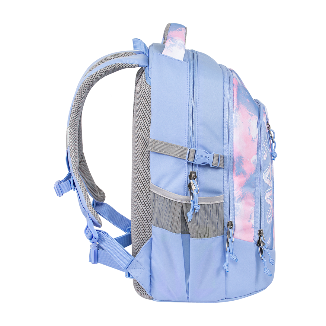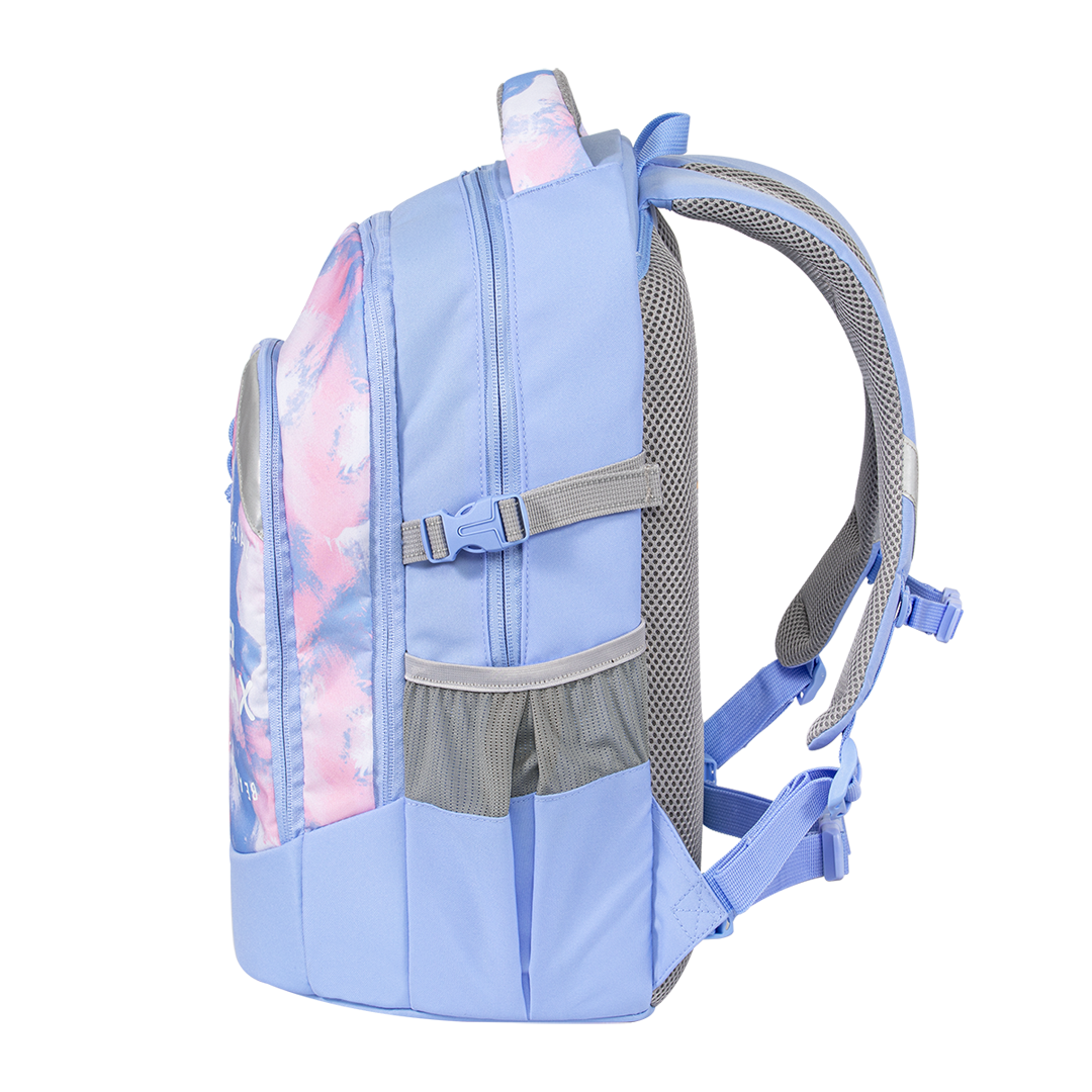 - 全感曲線護脊系統有效減輕肩部壓力達 66%,由 ICAS 上海英格爾集團檢測研發中心測評證明,3D網狀透氣加厚背墊上的獨特中空結構和肩部弧形曲線設計,配合胸扣和腰帶,有效緩衝書包重量負擔,支撐孩子脊柱,卸力舒壓,輔助維持良好體態