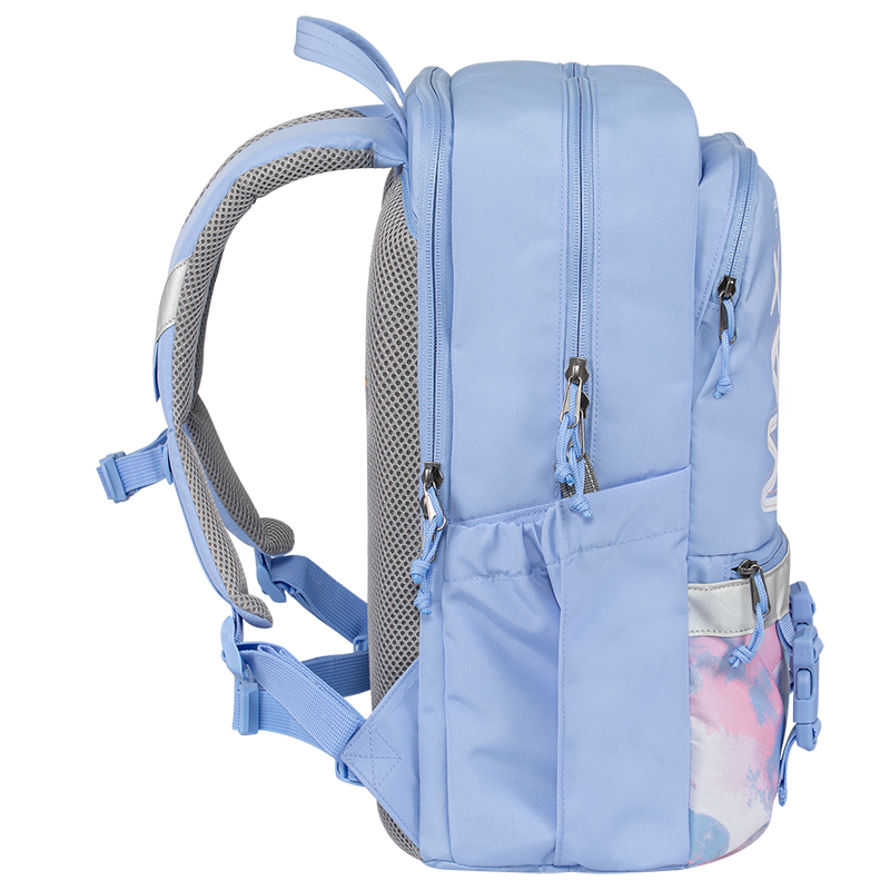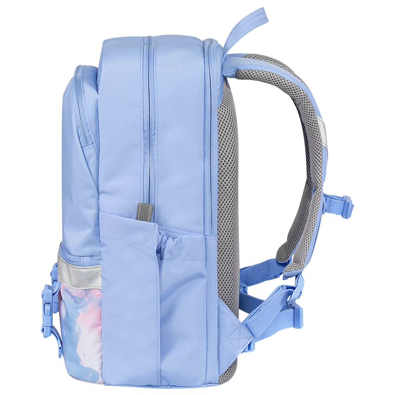 由ICAS上海英格爾集團檢測研發中心評測證明,書包採用的全感曲線護脊系統有效減輕肩部壓力達66%,3D網狀透氣加厚背墊上的獨特中空結構和肩部弧形曲線設計,配合胸扣和腰帶,有效緩衝書包重量負擔, 支撐孩子脊柱,卸力舒壓,輔助維持良好體態