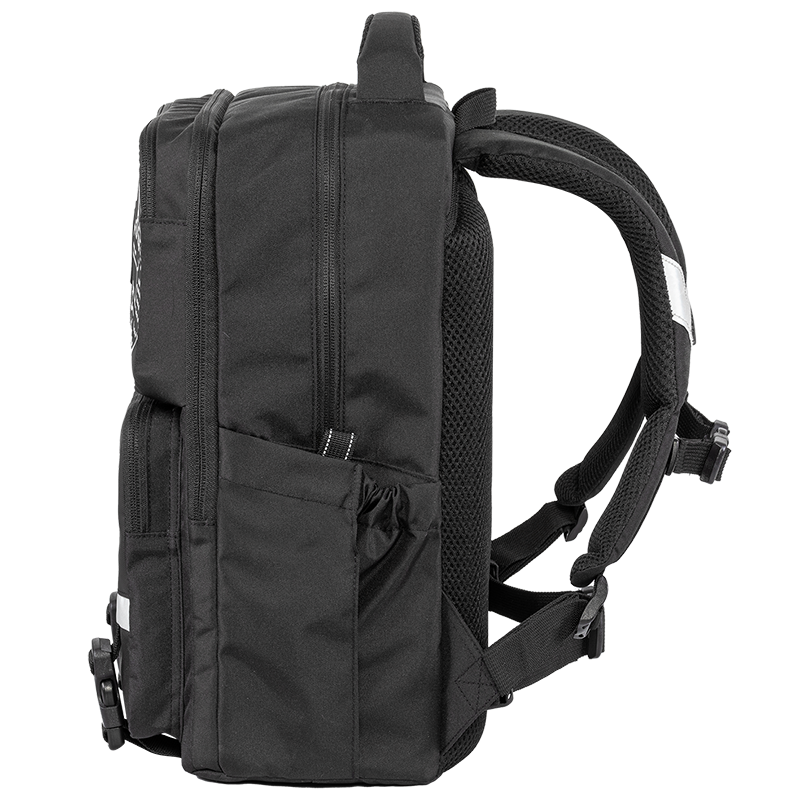 - 彈性束口側袋提供額外的儲存空間,可將水樽或雨傘等物品穩妥固定