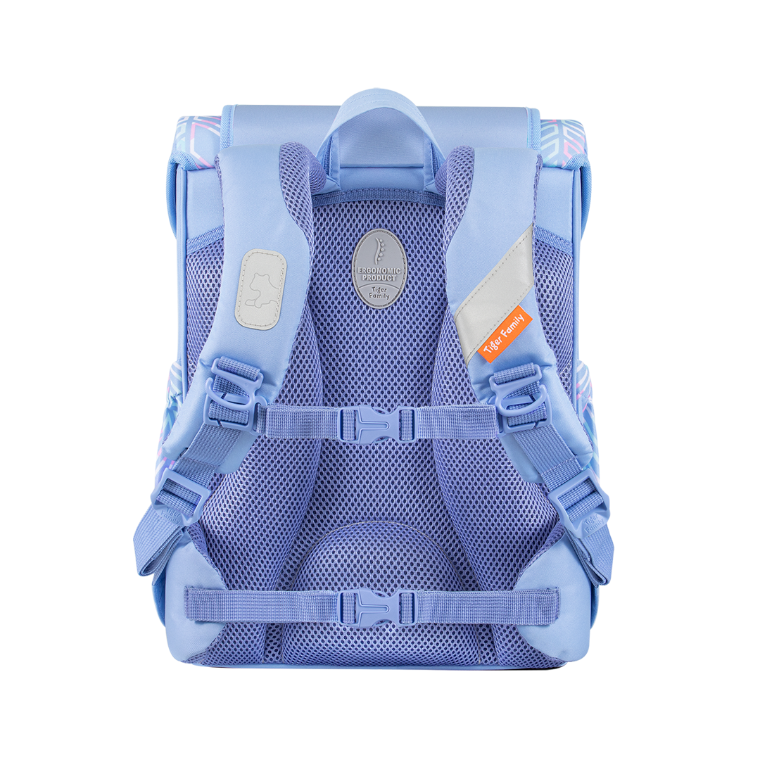 由ICAS上海英格爾集團檢測研發中心評測證明,書包採用的360人體工學護脊系統有效減輕肩部壓力達66%,3D網狀透氣加厚背墊上的獨特中空結構和肩部弧形曲線設計,配合胸扣和腰帶,有效緩衝書包重量負擔, 支撐孩子脊柱,卸力舒壓,輔助維持良好體態