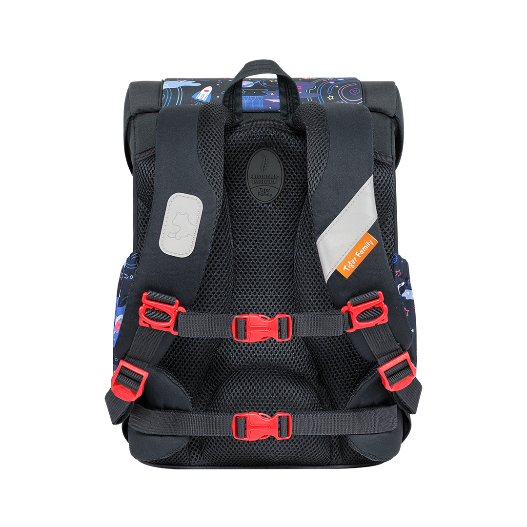 • 360人體工學護脊系統有效減輕肩部壓力達 66%,由 ICAS 上海英格爾集團檢測研發中心測評證明,3D網狀透氣加厚背墊上的獨特中空結構和肩部弧形曲線設計,配合胸扣和腰帶,有效緩衝書包重量負擔,支撐孩子脊柱,卸力舒壓,輔助維持良好體態
