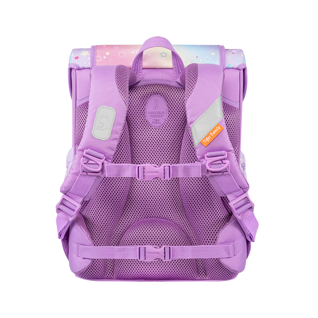 - 360人體工學護脊系統有效減輕肩部壓力達 66%,由 ICAS 上海英格爾集團檢測研發中心測評證明,3D網狀透氣加厚背墊上的獨特中空結構和肩部弧形曲線設計,配合胸扣和腰帶,有效緩衝書包重量負擔,支撐孩子脊柱,卸力舒壓,輔助維持良好體態