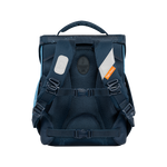 - The padded inner book compartment features an elastic holder that keeps heavy items close to your child’s back. This design promotes better posture by aligning the load with the body's center of gravity.