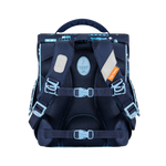 - The padded inner book compartment features an elastic holder that keeps heavy items close to your child’s back. This design promotes better posture by aligning the load with the body's center of gravity.