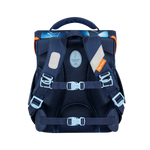- The padded inner book compartment features an elastic holder that keeps heavy items close to your child’s back. This design promotes better posture by aligning the load with the body's center of gravity.