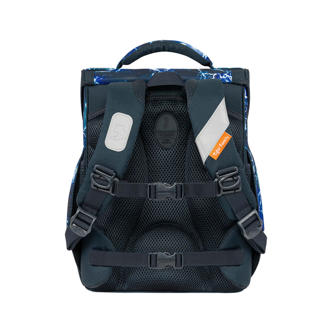 由ICAS上海英格爾集團檢測研發中心評測證明,書包採用的360人體工學護脊系統有效減輕肩部壓力達66%,3D網狀透氣加厚背墊上的獨特中空結構和肩部弧形曲線設計,配合胸扣和腰帶,有效緩衝書包重量負擔, 支撐孩子脊柱,卸力舒壓,輔助維持良好體態