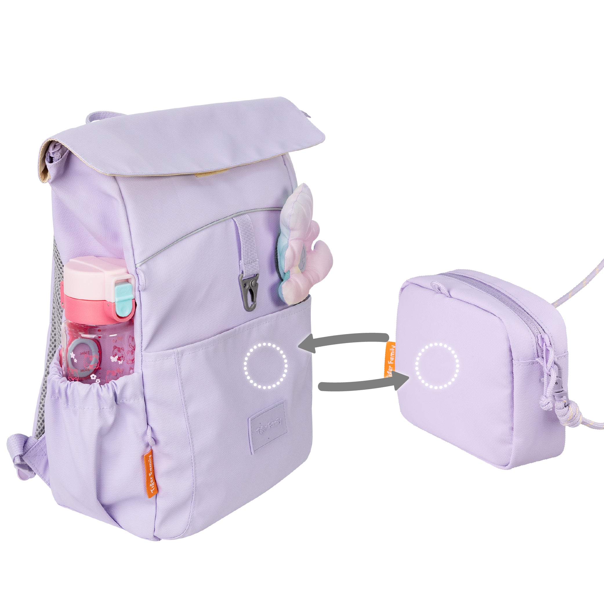 靈感源自袋鼠媽媽溫柔呵護的育兒袋,KANGA 休閒背包讓孩子能輕鬆又自信地攜帶心愛的物品。設有寬敞的磁吸式前袋,方便快速取物,並配備安全的登山扣,可扣上同系列的斜揹袋,每個細節都經過精心設計,確保孩子的寶物安全又隨身。