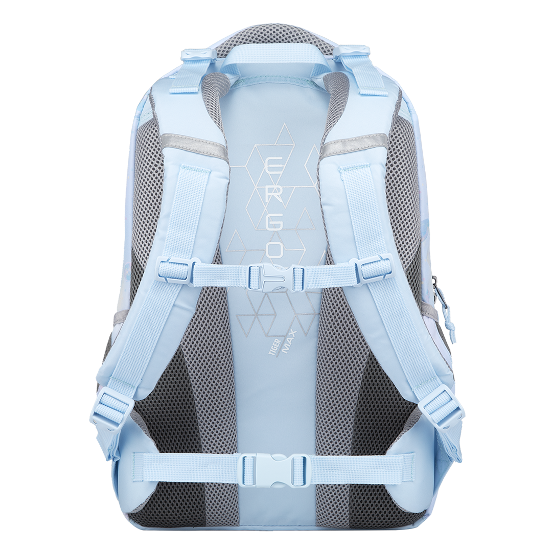 由ICAS上海英格爾集團檢測研發中心評測證明,書包採用的全感曲線護脊系統有效減輕肩部壓力達66%,3D網狀透氣加厚背墊上的獨特中空結構和肩部弧形曲線設計,配合胸扣和腰帶,有效緩衝書包重量負擔, 支撐孩子脊柱,卸力舒壓,輔助維持良好體態